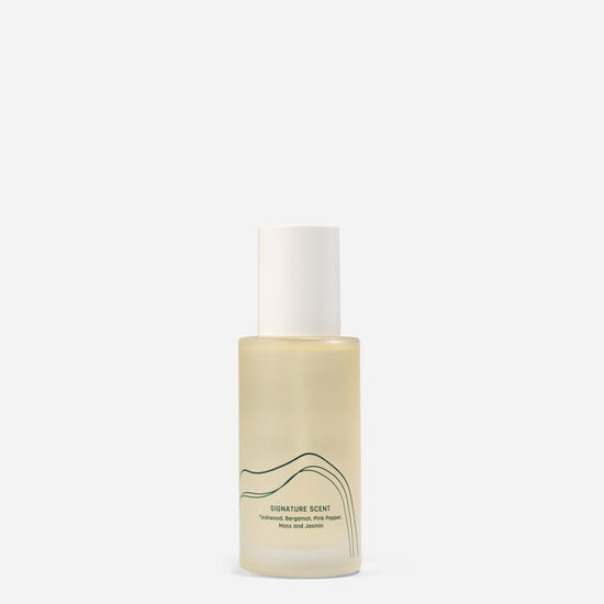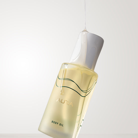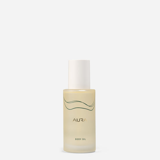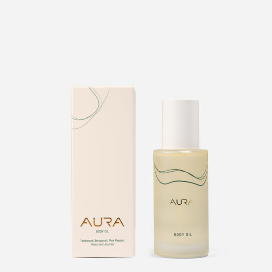 Indulge in a ritual of renewal with this luxurious blend of coconut oil, jojoba oil, almond oil, and AURA’s signature fragrance of Teakwood, Bergamot, Pink Pepper, Moss, and Jasmine. This nourishing body oil delivers deep, lasting hydration while leaving the skin beautifully radiant and softly scented. Housed in a frosted glass bottle, it is crafted for beauty, intention, and mindful reuse.