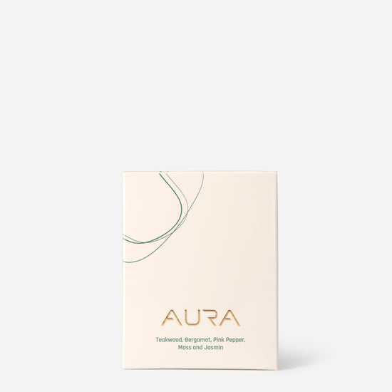 Bring home the essence of AURA. Hand-poured with natural coconut wax in a timeless ceramic jar, this candle evokes the refined harmony of teakwood, bergamot, pink pepper, moss, and jasmine. With up to 90 hours of burn, it offers not just fragrance, but a memory of infinite horizons.