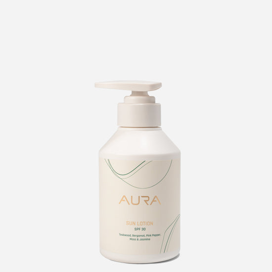 A lightweight, hydrating sun lotion with SPF30 protection, enriched with AURA’s signature fragrance - Teakwood, Bergamot, Pink Pepper, Moss and Jasmine. Absorbing effortlessly without residue, it leaves the skin protected, nourished, and luxuriously cared for under the sun.