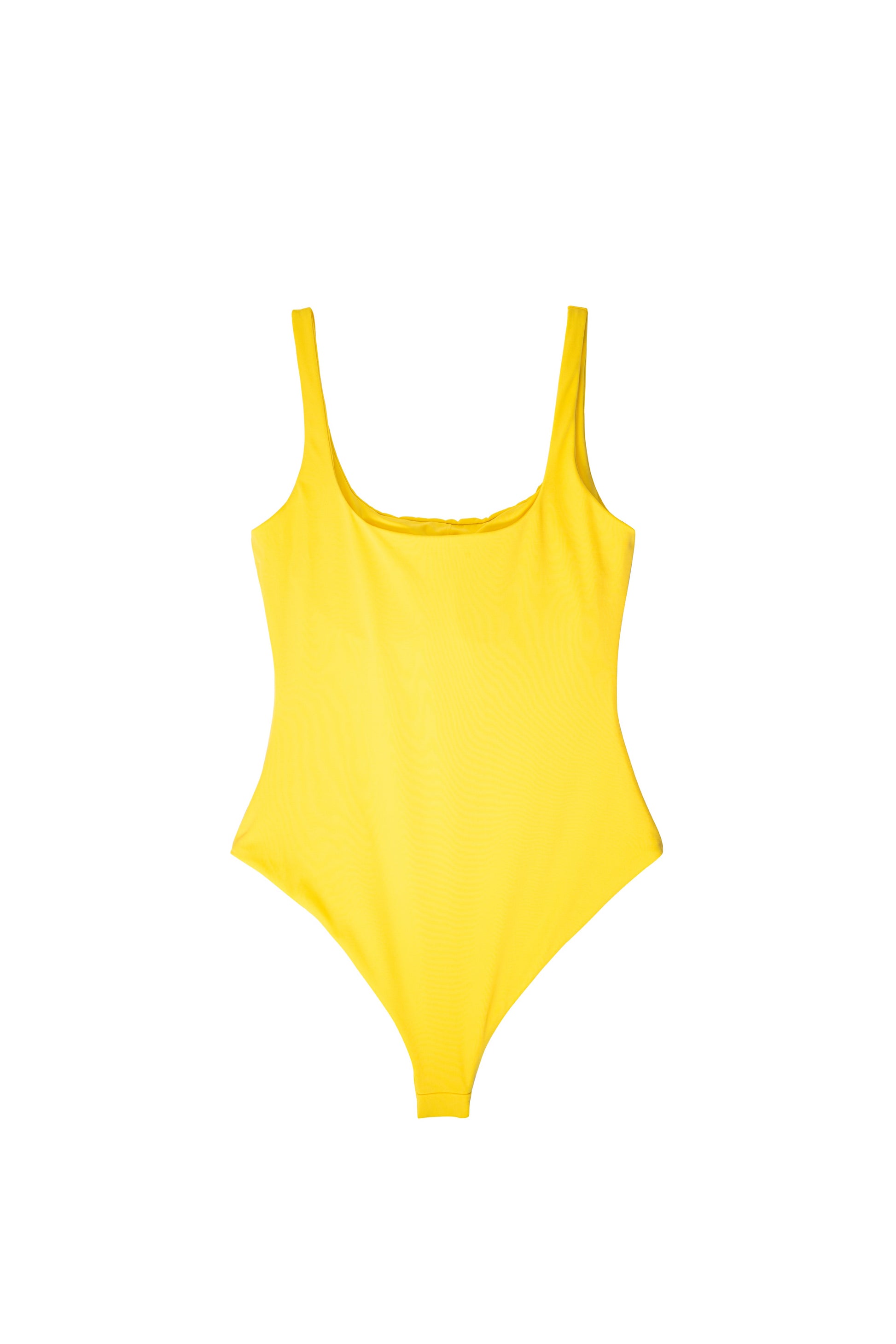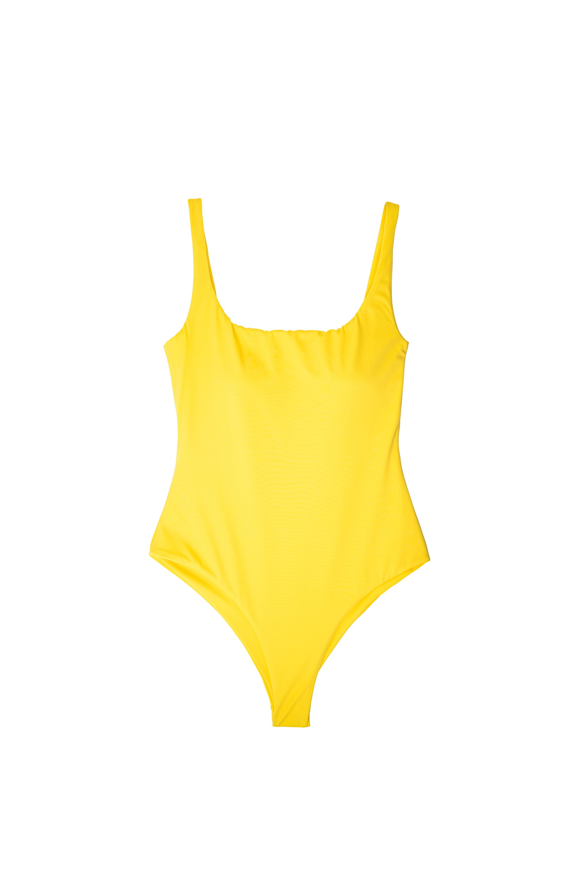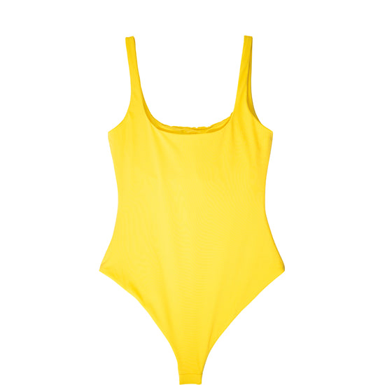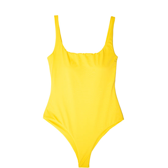 The Calypso is a vibrant, elegant one-piece crafted in refreshing Citrus Yellow, designed to brighten every sun-soaked moment. Made with smooth, seamless construction for a sculpted and comfortable fit, it features a classic tank silhouette with a flattering scoop neckline and a curved square-back detail. Confident, and effortlessly minimal, this timeless design enhances natural curves while delivering a resort-chic look - perfect for poolside lounging and beach escapes.