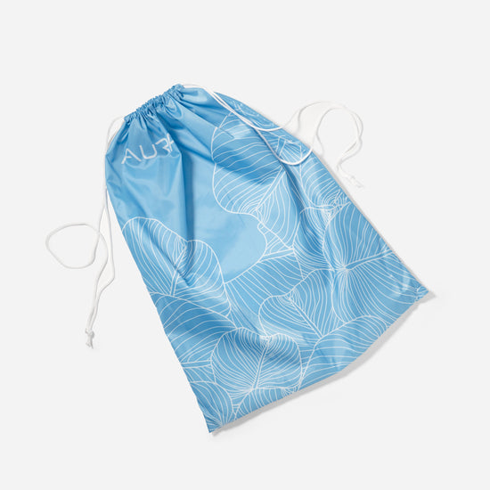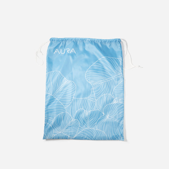 A stylish canvas drawstring bag perfectly sized for our Oversized Beach Towel, offering a matching and effortless AURA beach look.