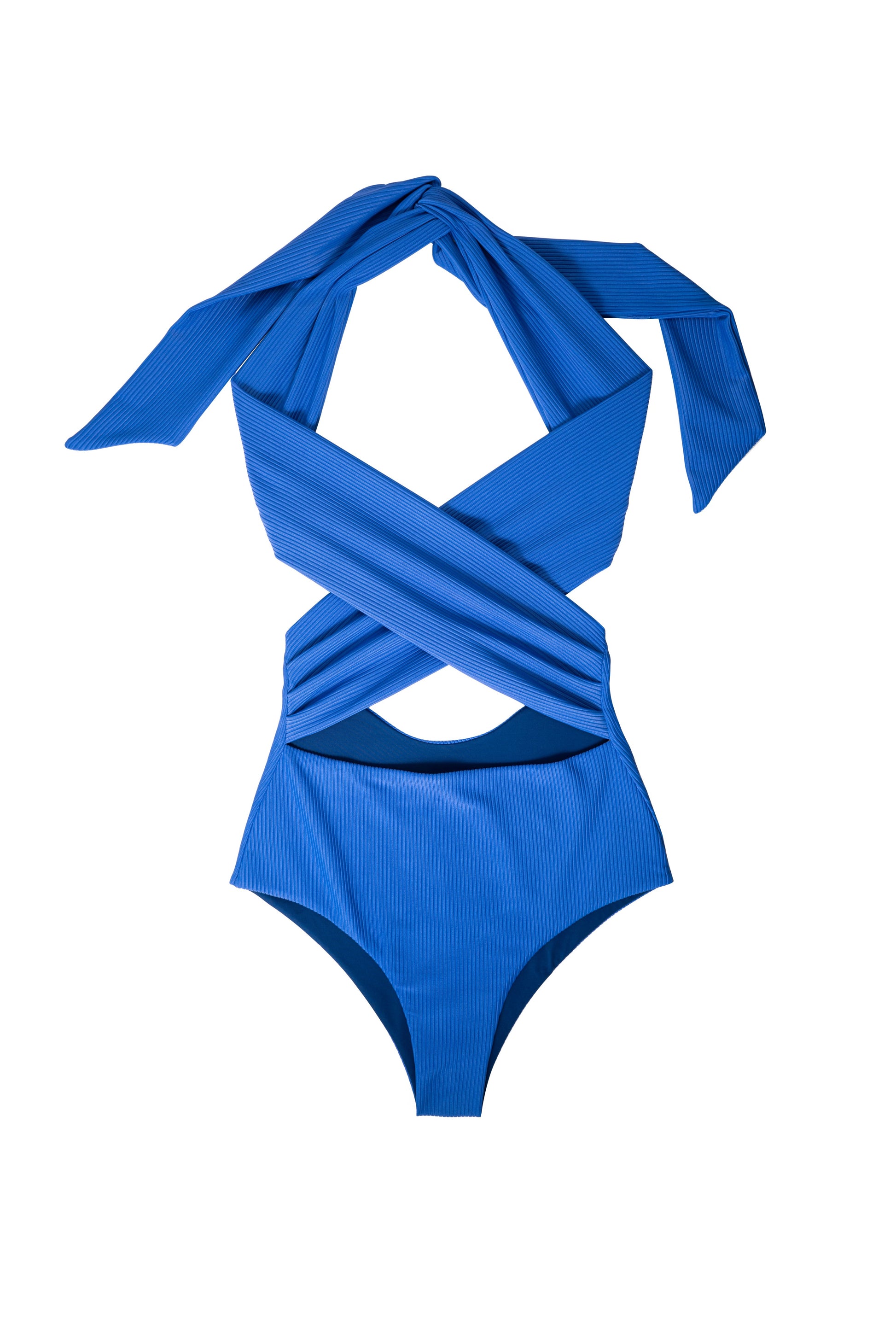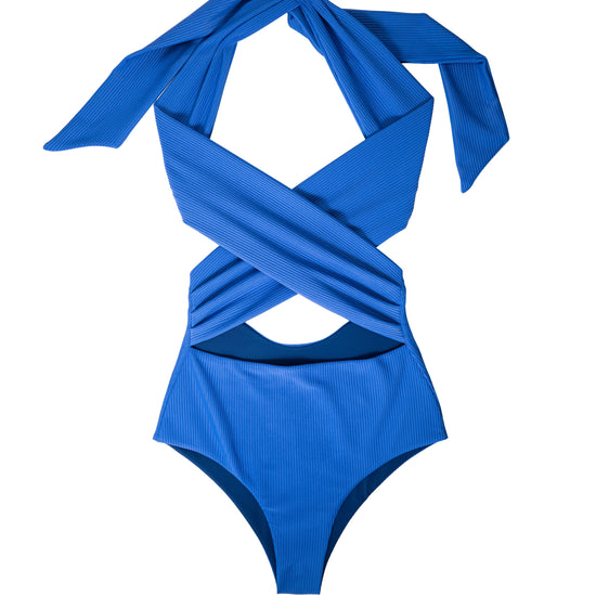 Côte d’AURA is a striking wrap-front one-piece designed to sculpt, support, and elevate your silhouette with timeless elegance. Crafted in a rich Indigo shade, it features soft, seamless construction and adjustable wrap ties that allow personalized styling for the perfect fit. The crisscross halter design, combined with a flattering low back, creates a bold yet refined look - made for poolside lounging, skyline views, and every sunlit moment in between.