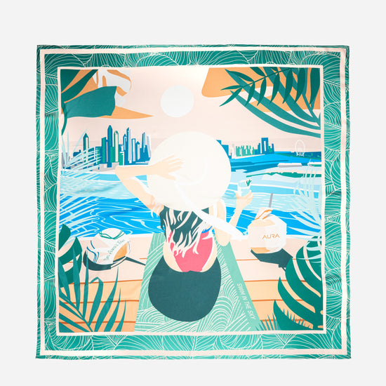 Wrap yourself in a burst of color with our Green Dubai Skyline scarf, designed to make a statement. Featuring a range of bold hues and artful patterns, it adds a distinctive flair to any ensemble. Crafted from smooth Satin that drapes effortlessly, this is the ultimate accessory for those who appreciate timeless elegance, refined details, and expressive style.