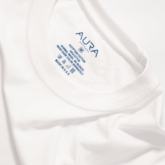 Crafted for refined simplicity, the Essential T-shirt features our iconic Blue AURA Monogram embossed logo - a subtle statement of elevated style. Made from premium Egyptian cotton for a soft, breathable feel and all-day comfort.
