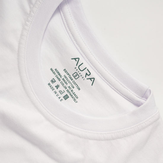 Crafted for refined simplicity, the Essential T-shirt features our iconic Evergreen AURA embossed logo - a subtle statement of elevated style. Made from premium Egyptian cotton for a soft, breathable feel and all-day comfort.