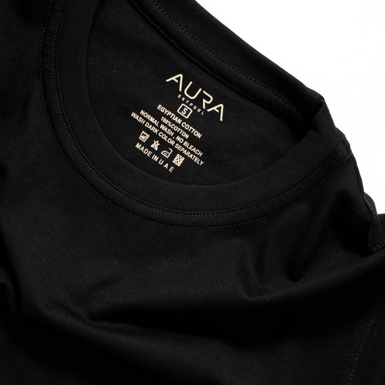 Crafted for refined simplicity, the Essential T-shirt features our iconic AURA embossed logo in Stone beige, a subtle statement of elevated style. Made from premium Egyptian cotton for a soft, breathable feel and all-day comfort.