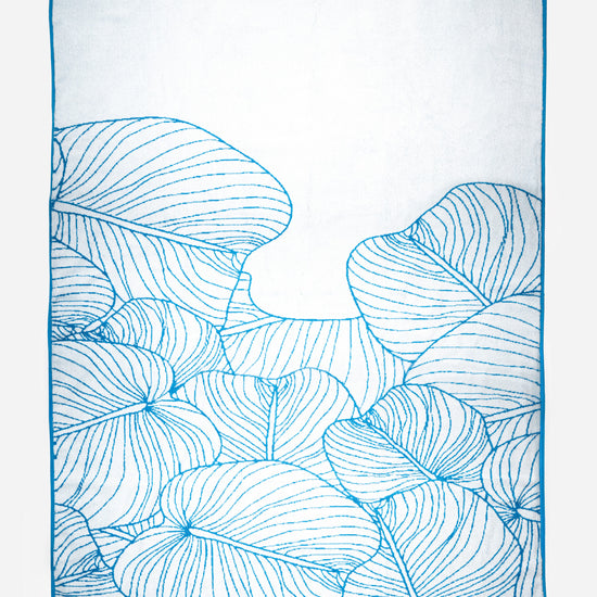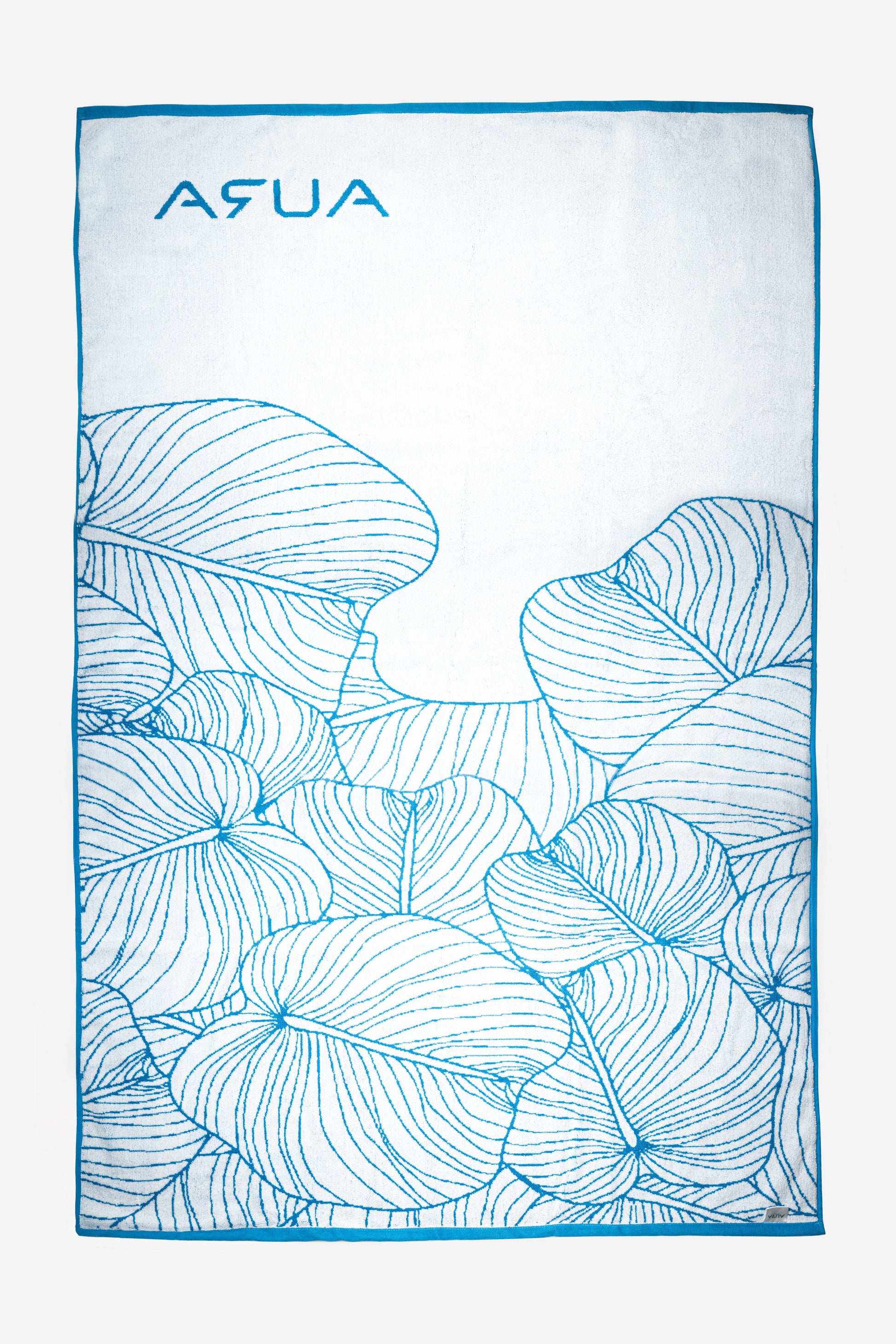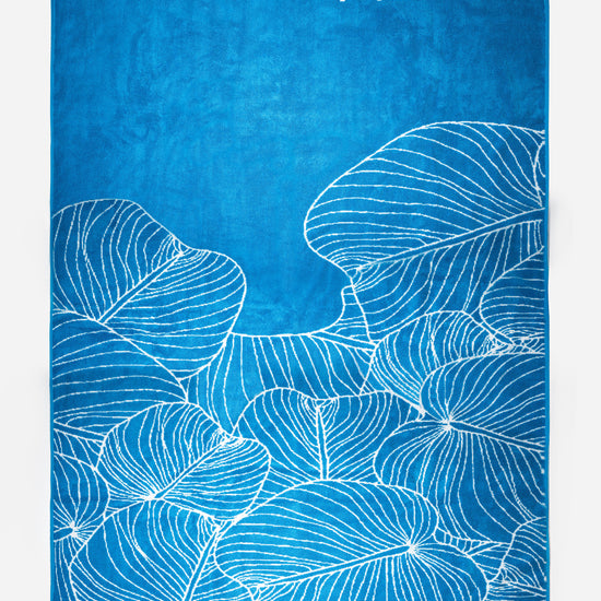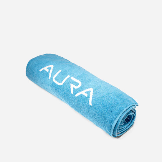 A plush oversized beach towel featuring AURA’s signature sky-blue palm leaf design. Crafted from soft, absorbent fabric for comfort by the pool or beach, it offers generous coverage and a premium feel. Finished with the subtle AURA logo-your perfect lifestyle essential.