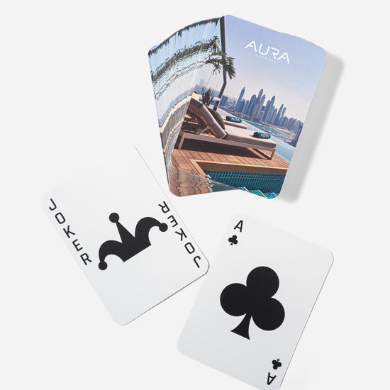 Crafted from high-quality, durable paper with a smooth finish, each card features an elegant AURA Skypool skyline – inspired design, adding a refined and exclusive touch to every game. Perfect for travel, gifting, and leisure, this stylish deck invites you to Challenge Your AURA and enjoy moments of sophistication and fun.