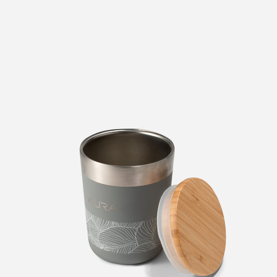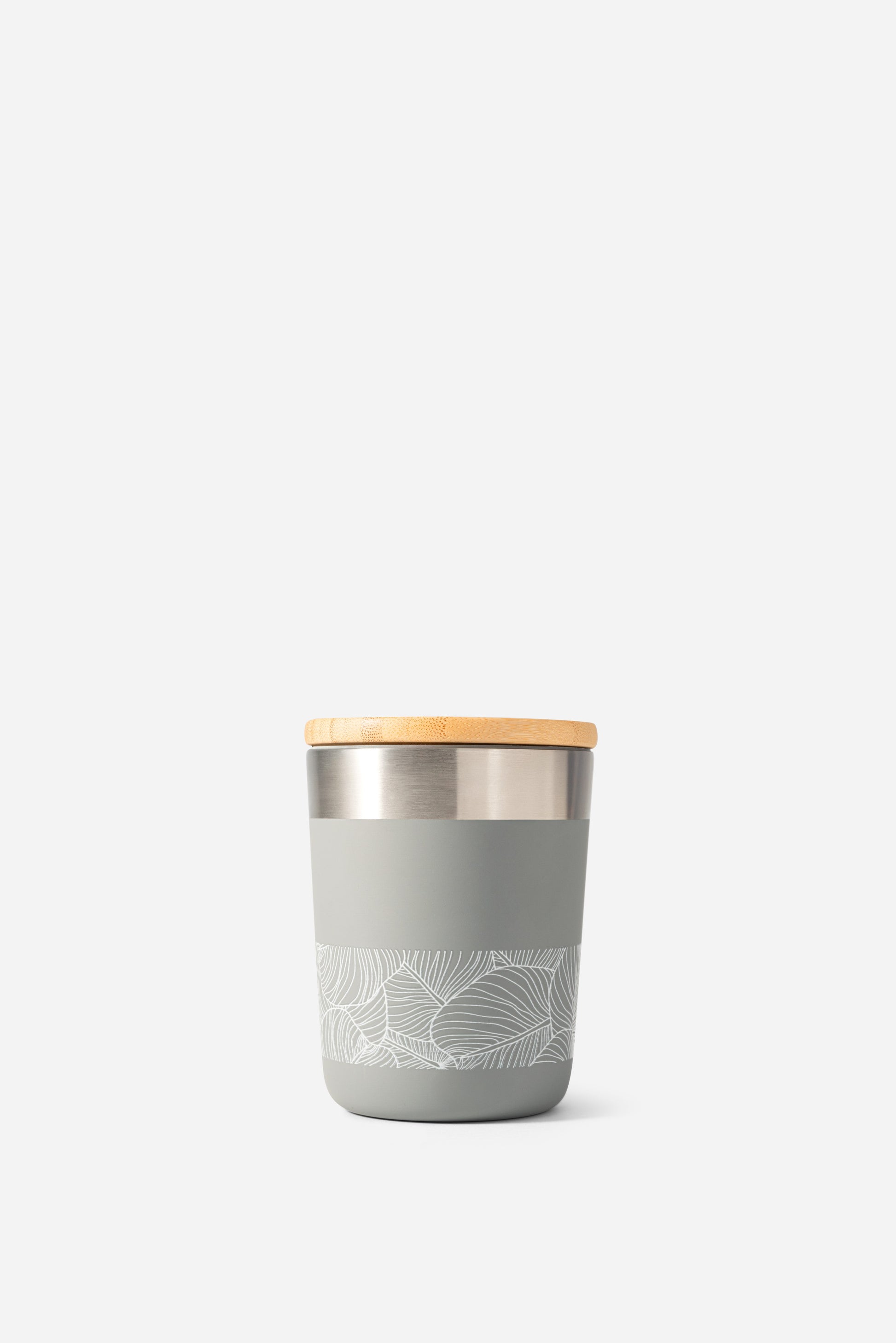 Stay refreshed in style with this sleek, insulated mug featuring a crisp Charcoal Grey finish, with our signature palm leaves design. Made from durable stainless steel with a natural wooden lid, it delivers a clean, modern look while keeping your drinks hot or cold for hours. Perfect for home, office, or on-the-go use, this minimalist mug combines everyday functionality with timeless design.