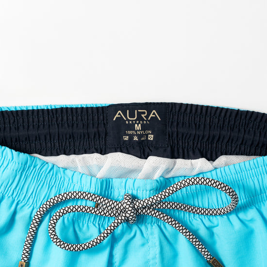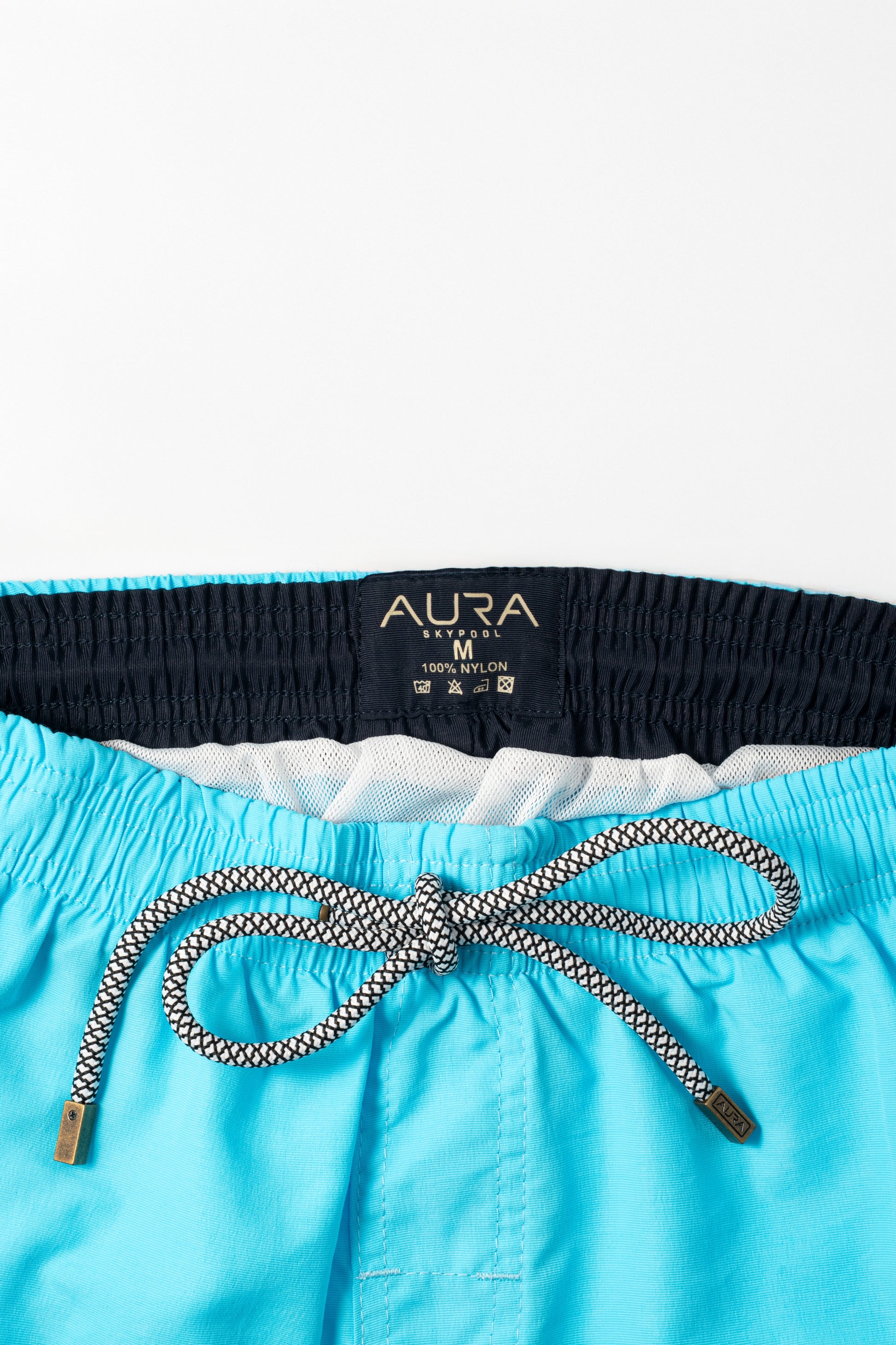 Crafted from 100% premium quick-dry nylon, the Voyager swim shorts deliver a comfortable, easy-wear feel. Designed in a vibrant Azure Blue with a refined fit and adjustable drawstring, they bring effortless style to every poolside or beach moment.