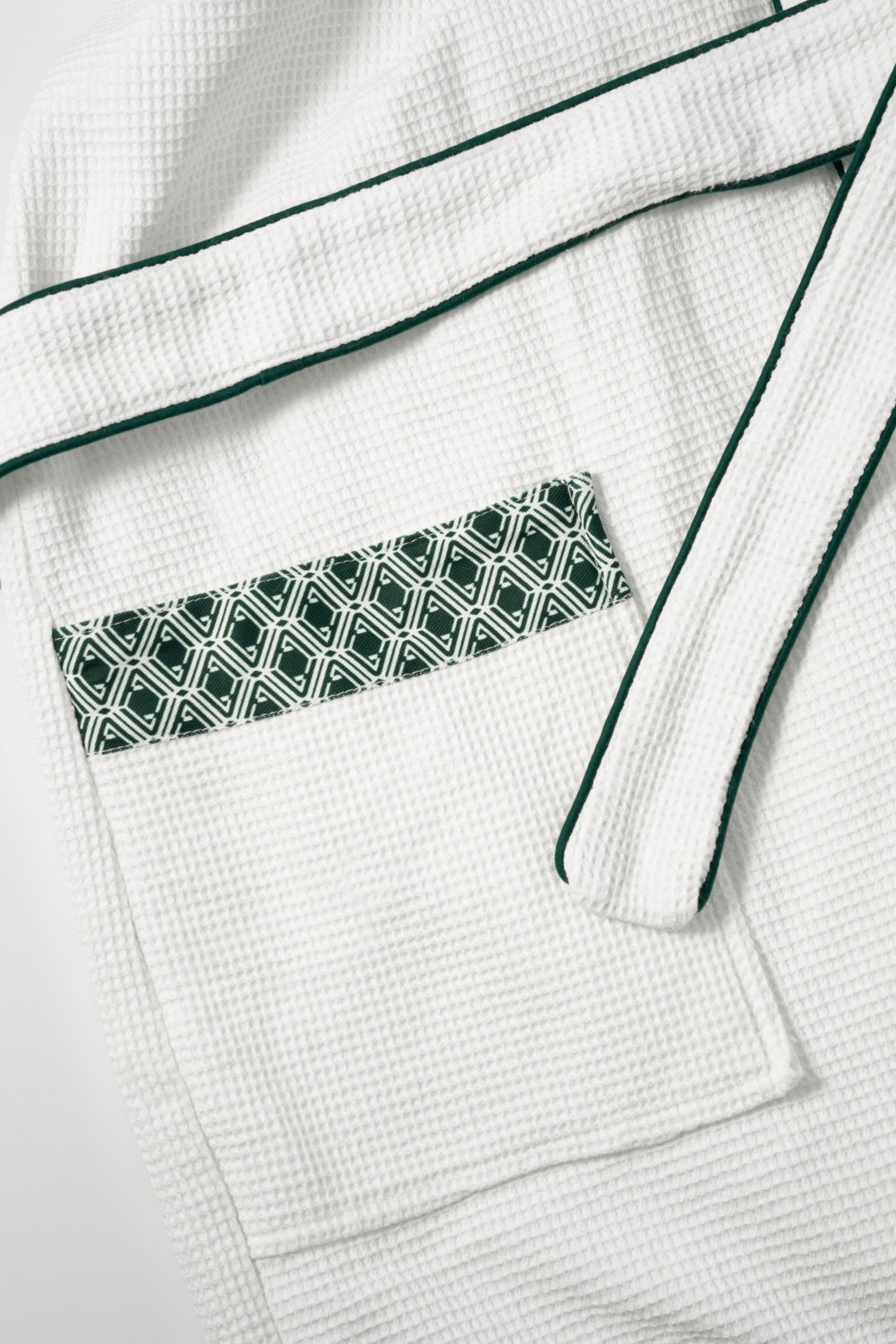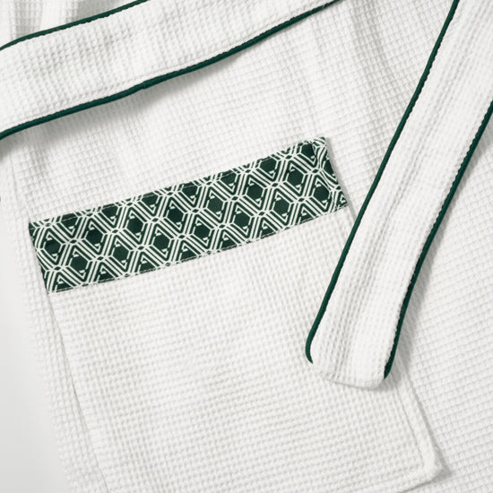Waffle Robe - Monogram Evergreen & White